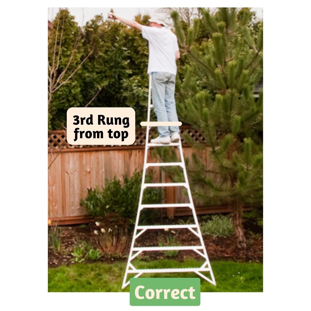 - The third rung from the top is the highest rung you can stand on.